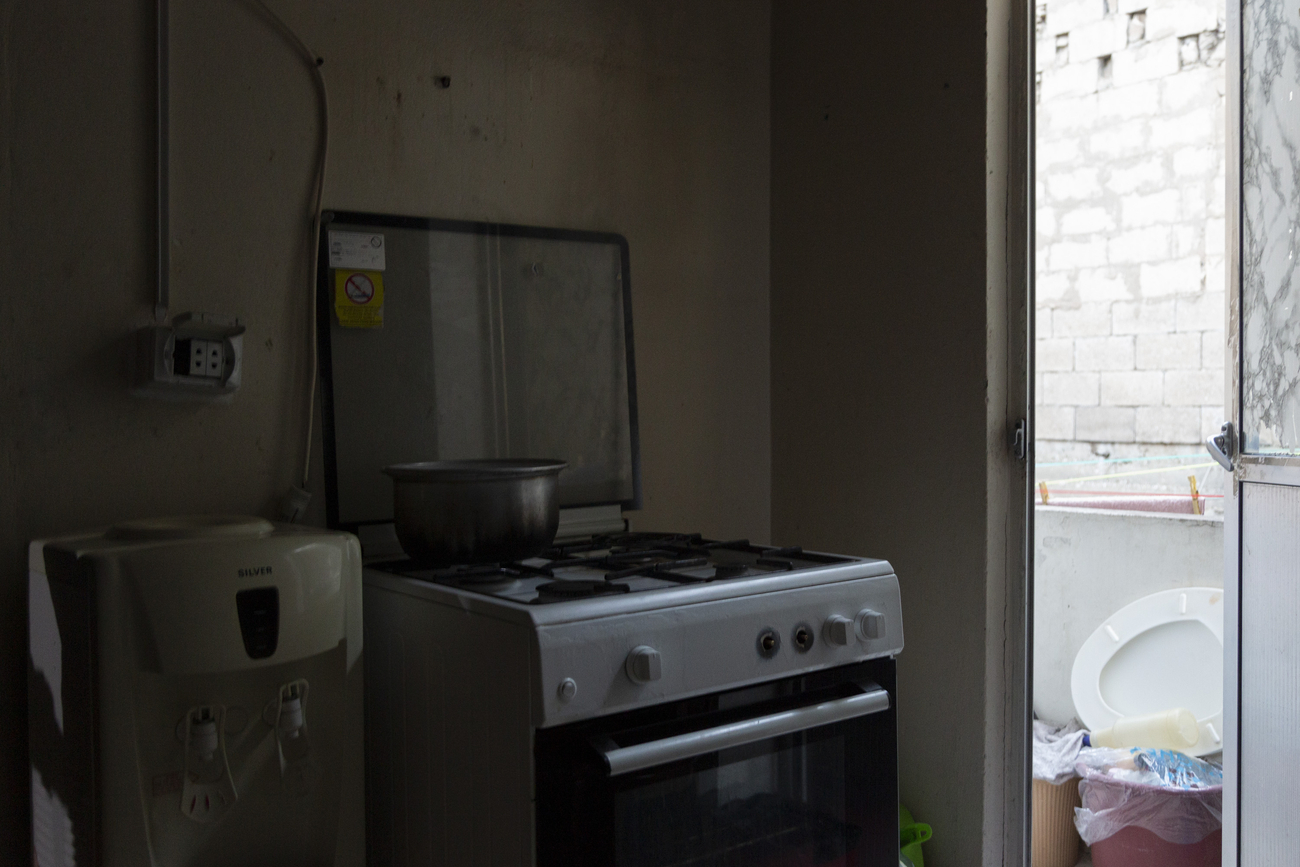 قدر على الفرن في مطبخ شقة تتشاركها جوليانا مع ست نساء مهاجرات أُخريات، تخلّى عنهنّ أصحاب العمل أثناء الحرب.