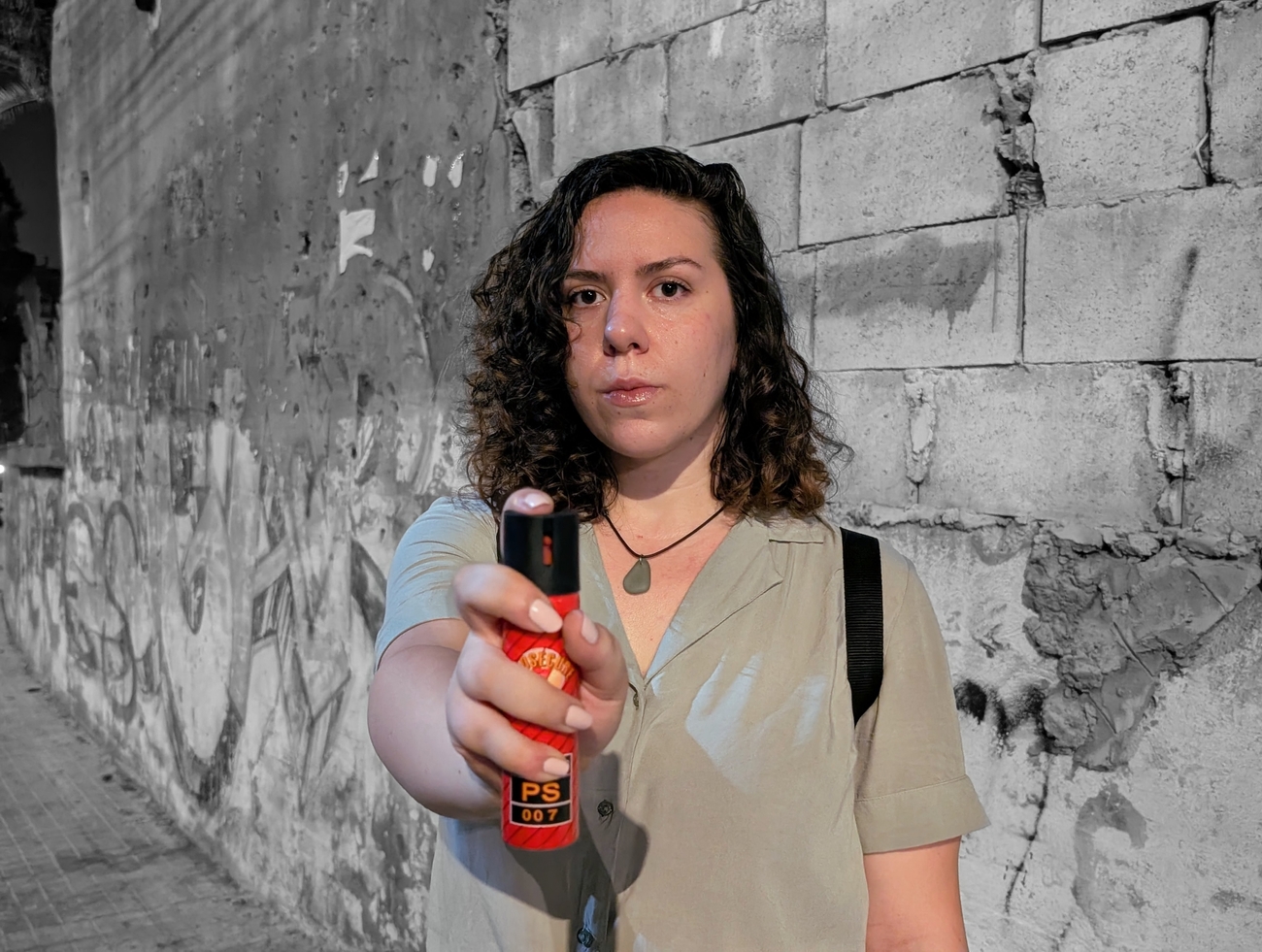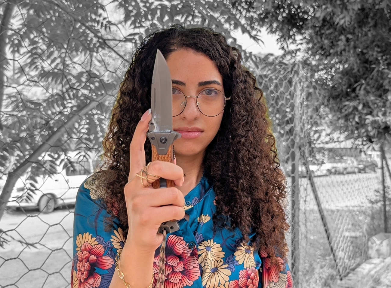 منذ ذلك الوقت وحقيبتُها لا تخلو من بخاخ الفلفل وسكين صغيرة وجهاز إنذار. تضحك وهي تخبرنا كيف جلبت لها صديقتها من تركيا سكينًا كهديّة، بعدما اشتهرت بين معارفها بحمل هذه الأدوات. "أحملها للأن وجودها يمنحني شيئًا من الاطمئنان… فهي وسيلة للدفاع عن نفسي إذا اضطرني الأمر".