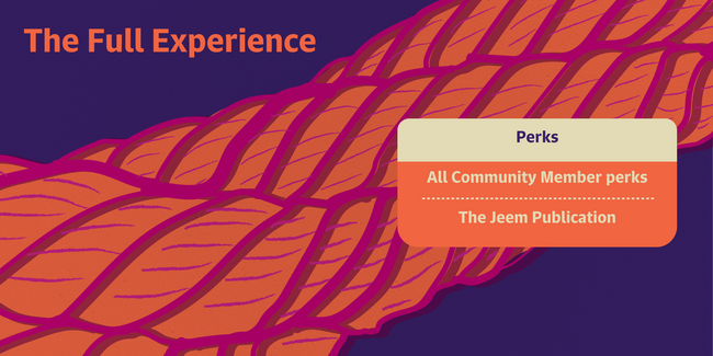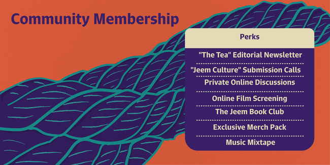 Become part of our inner circle. Includes our exclusive quarterly "The Tea" newsletter (a personal letter from a visiting editor and our team with insights and recommendations) and invitations to member-only online discussions, masterclasses, music mixtape, online films screenings, book club and Jeem’s custom merchandise.